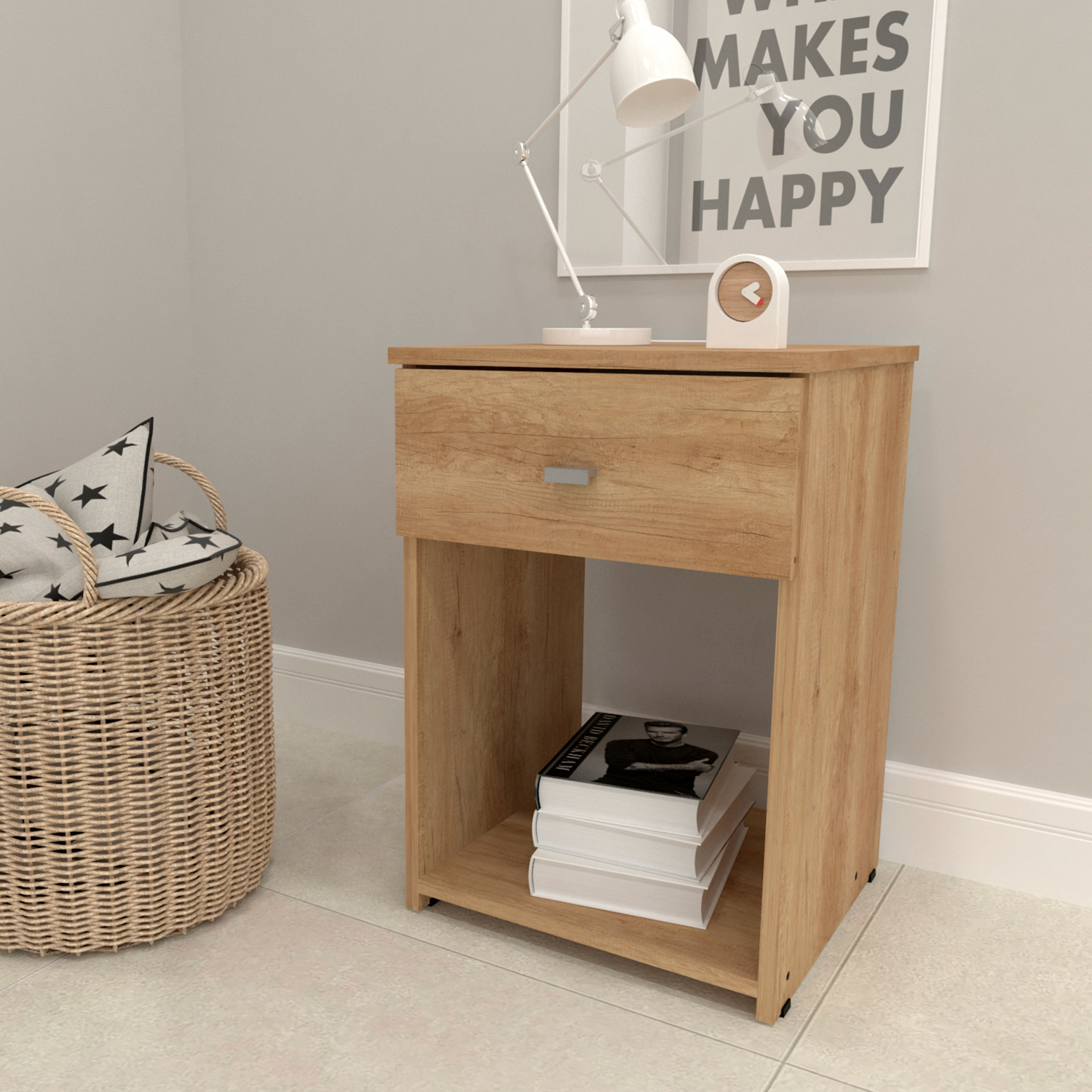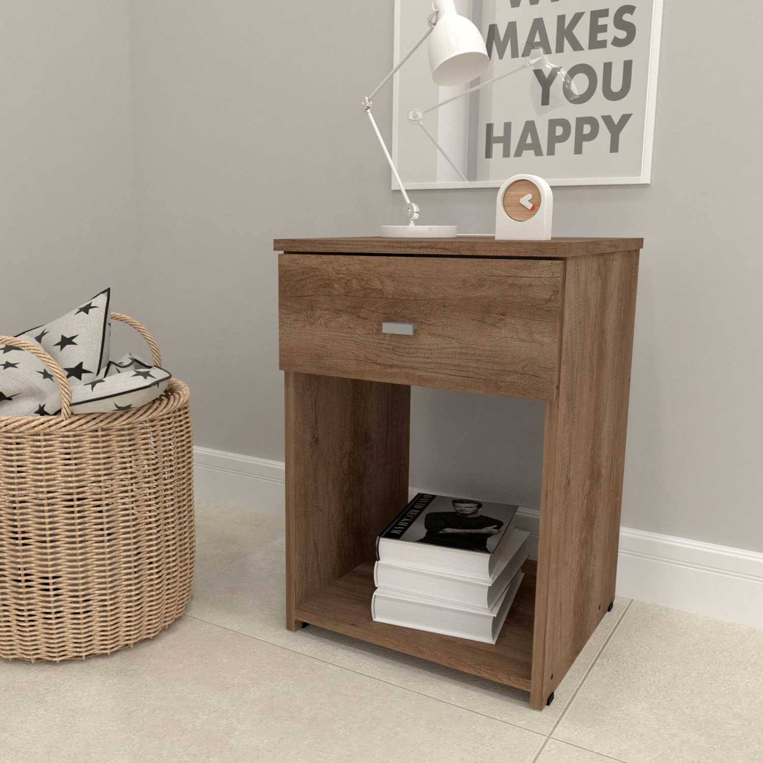 La nueva Mesa de Luz DAKAR ZERO es compacta,económica y moderna.Pensada para espacios más reducidos,posee correderas metálicas y todo su exterior en melamina.