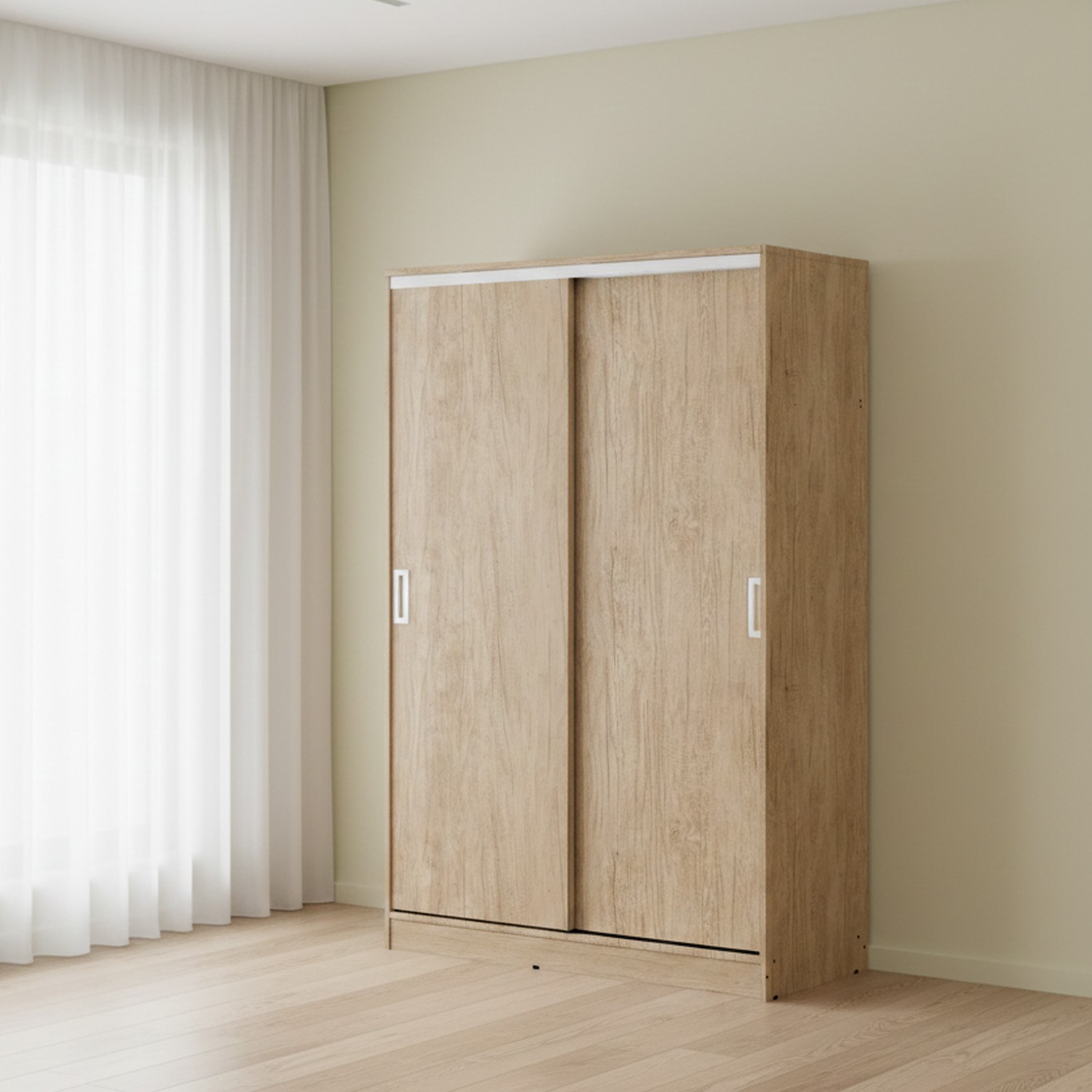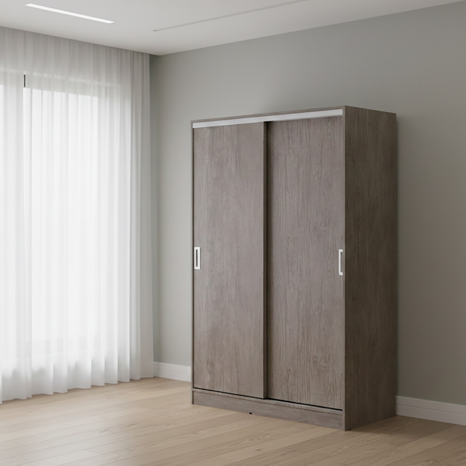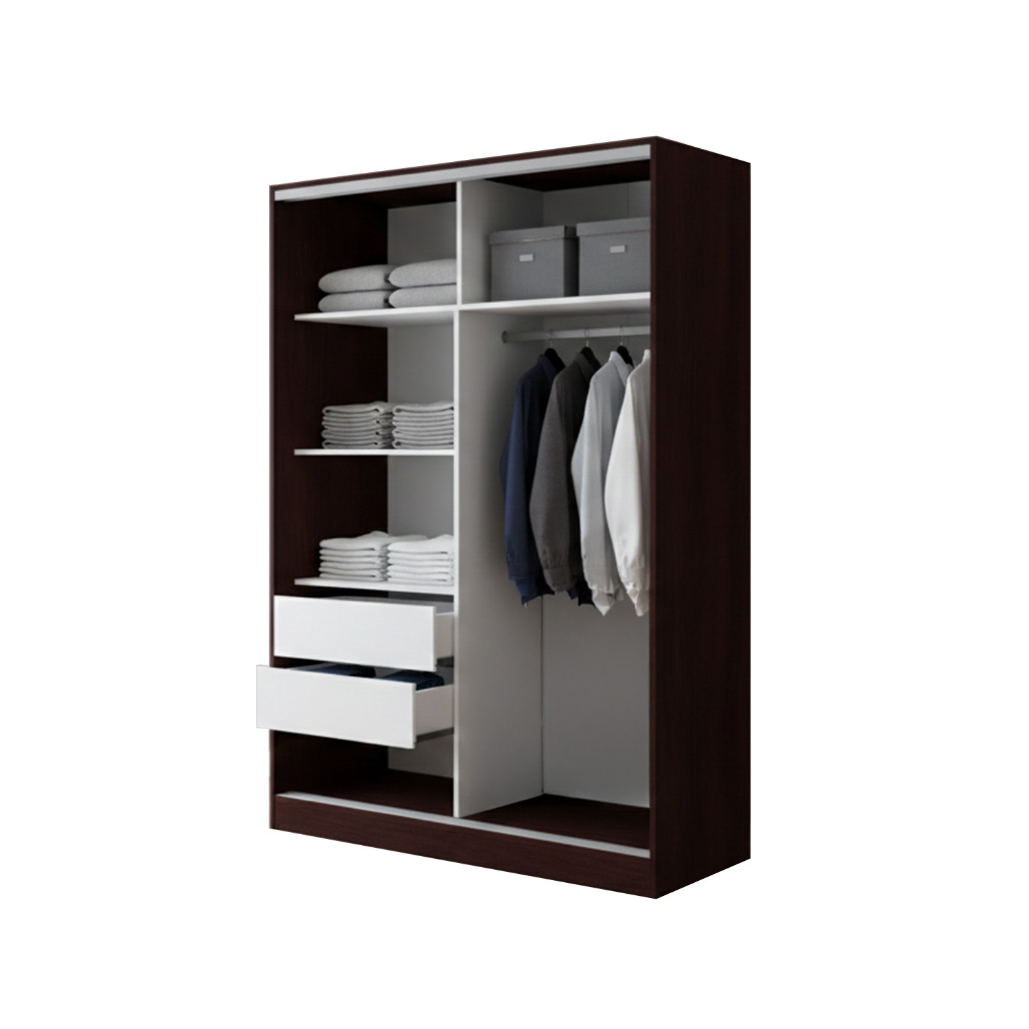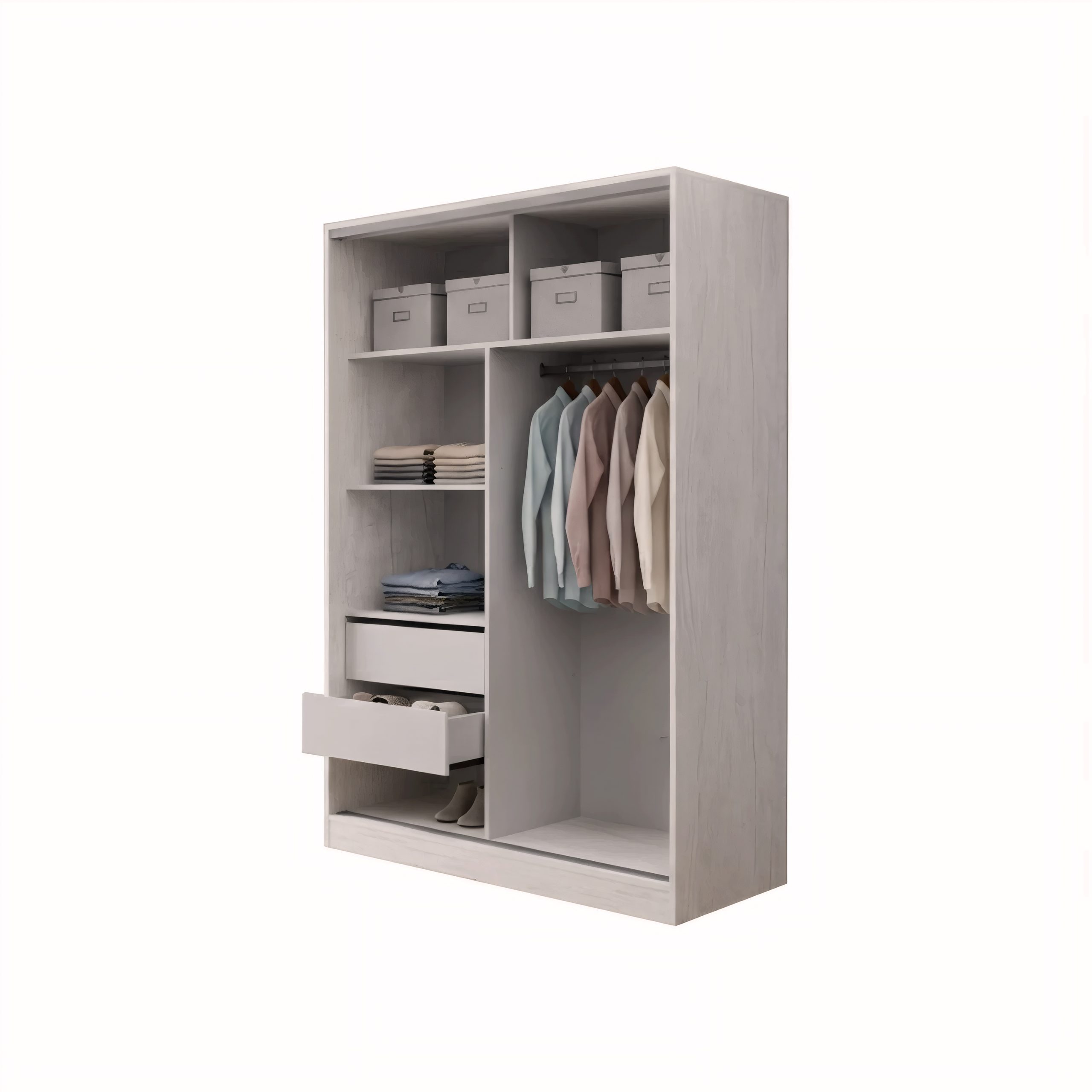Este placard cuenta con dos puertas corredizas que optimizan el espacio, permitiendo un acceso fácil y cómodo a su interior. Equipado con dos cajones y cuatro estantes, ofrece una capacidad de peso de hasta 80 kg, ideal para organizar ropa, calzado y accesorios de manera eficiente. Su estructura de MDP garantiza durabilidad y resistencia, asegurando que tu inversión se mantenga en excelente estado a lo largo del tiempo.