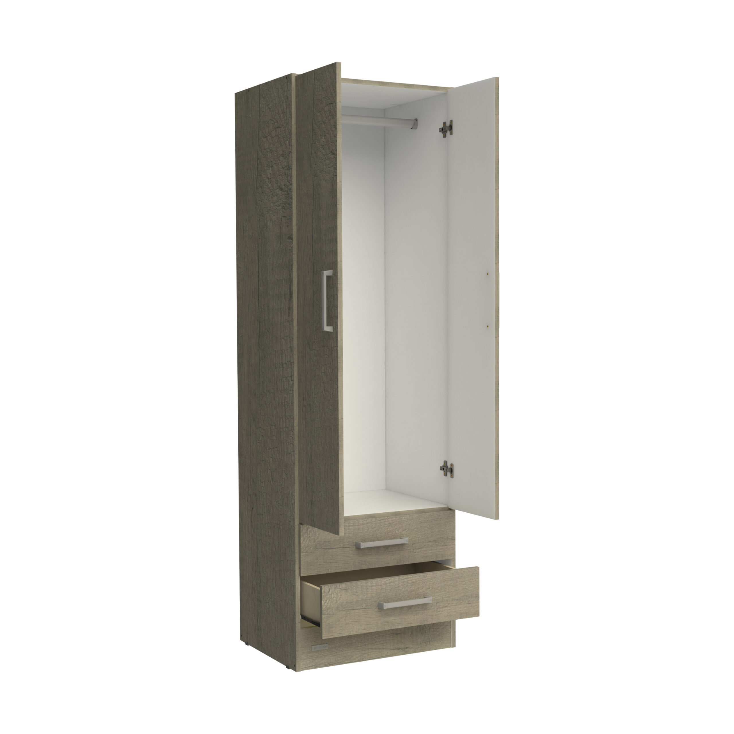 El Placard 22 Dakar es un ropero angosto pensado para espacios reducidos.Todo su exterior es de melamina y el interior se encuentra revestido.Cuenta con dos cajones cuyas correderas son metálicas.